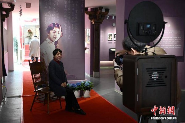 图为市民在馆内拍照留念。中新社记者 吕明 摄