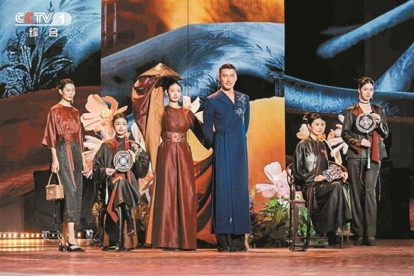 深圳原创品牌“德玺见萩”香云纱惊艳亮相非遗晚会。 视频截图