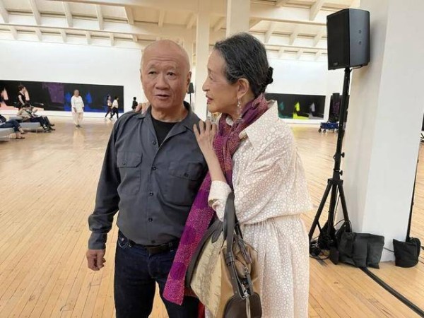 2025年10月4日,江青(右)、谢德庆合影于迪亚毕肯美术馆回顾展