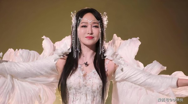 紧接着,第一句“白云苍苍,踩着风扶摇直上”就飘出来了,声音还是一如既往的空灵、清晰,从音响里传得老远。这时候萨顶顶还完全沉浸在自己的表演里,嘴唇动得那叫一个标准,跟音响里的歌声完美同步,一点破绽都没有。