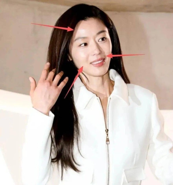 高清现场照显示,她的上半脸明显紧绷,仿佛被拉平修饰过,而下半脸却略显松弛,整体有些割裂感。网友不禁猜测:全智贤是否进行了微整?