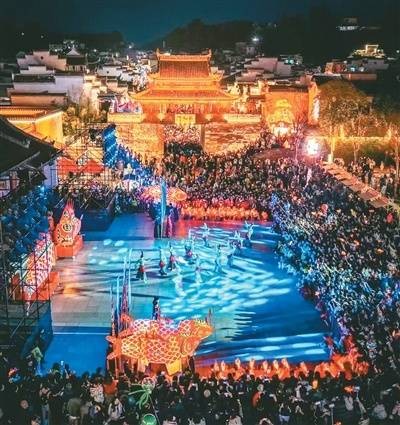 大年初四,皖南山区的寒意还未散尽,安徽歙县徽州古城却早已被热气腾腾的年味焐暖。踏进城门,人声、鼓声、笑声扑面而来——大红灯笼挂满了城墙,石板路上游人如织。