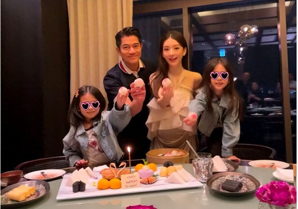 郭富城三胎女儿满月,一家五口在家庆祝,方媛出月子身材更丰腴了