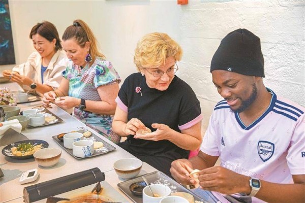3月2日,在沙河街道举办的“包饺子·品汤圆”中外文化交流活动中,中外友人携手体验中华传统美食文化。 深圳特区报记者 毕晗 摄