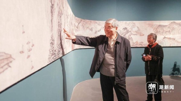 在“家乡情缘”板块中,一幅长达33米的《富春山居新图》是本次展览的“重头戏”。画作从六和塔一直延伸至梅城。作为杭州人,潘云鹤对这些景致再熟悉不过,他指了指画中的桐君山、严子陵钓台等桐庐地标,说“这些地方,我都去过。”