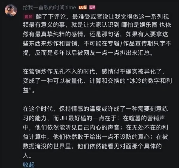 人们追捧“JH恋”,本质上是在怀念那个“不那么算计”的年代,愿意相信,在2003—2009那几年,真的有几句只写给一个人的歌词,几个只有当事人懂的微表情,几段没有商业目的的同行旅程。这种相信,是对当下“过度计算”的温和反抗。