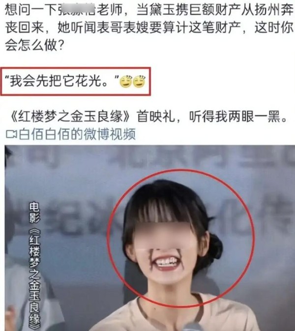 甚至出演四大名著相关作品,对角色内核和人物情节一窍不通,被问黛玉面对财产算计该如何做,竟答“先把它花光”,估计曹雪芹听了都得气得掀棺材板。这些洋相,不仅丢了自己的脸,更是砸了演员这个职业的招牌。