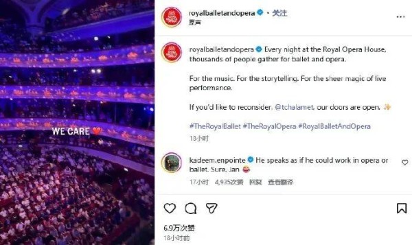 提莫西·查拉梅近日称“我不想从事芭蕾和歌剧这样已经无人在意的行业”,引发争议,相关领域人员也提出反对。