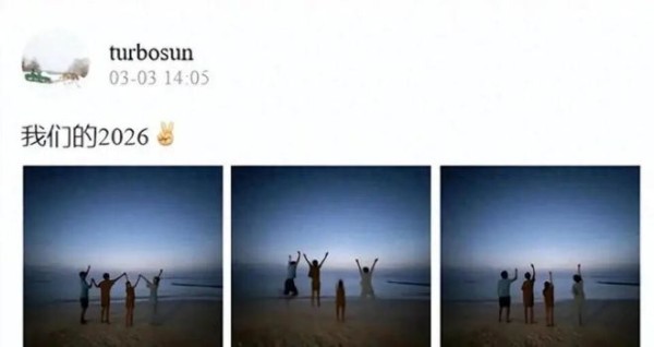 元宵佳节当天,孙俪还在社交平台分享了一家四口海边度假的全家福,为这个团圆的节日增添了几分暖意。照片中,一家四口手牵着手排成一排,邓超和小花负责比“2”,等等用手指比出圆圆的“0”,孙俪则伸出手掌比出“6”,四人默契配合凑成“2026”的手势,氛围感拉满。