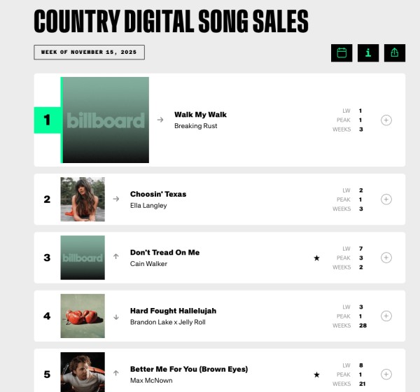 AI生成的歌曲《Walk My Walk》连续在榜了三周