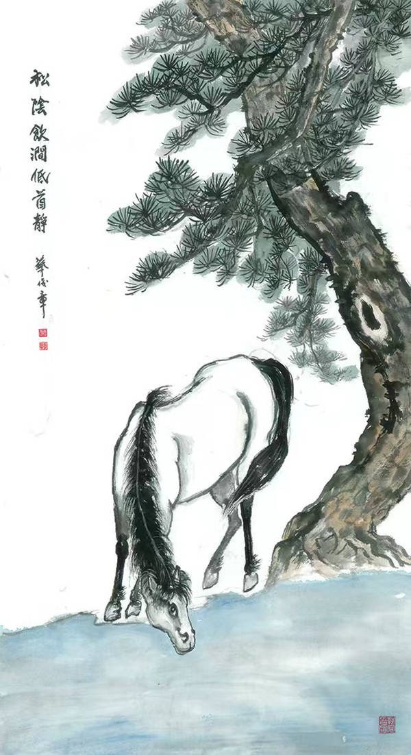从《八骏奔腾》的万里豪情,到《松阴饮涧》的悠然自守,蔡俊章先生用画笔告诉我们:真正的力量,既在于一往无前的进取,也在于守住内心的宁静。这种精神,既是对传统文化的传承,也是对当代人生的启示 —— 在喧嚣的世界里,愿我们都能如他笔下的马一般,既能驰骤千里,亦能静听松风,在动静之间,活出生命的丰盈与从容。(知名书画评论家李广义)