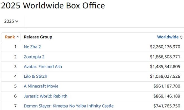 不过比较可惜的是,《疯狂动物城2》终究没能战胜饺子导演的国产动画大片《哪吒2》,在全球年度票房榜以及全球动画电影票房榜中,只能位列第二名。