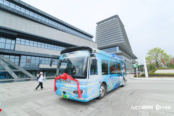 广州海事博物馆与广州巴士集团联手,打造了一辆“复现·天宫海市”文旅专列主题车。车身是渐变蓝金配色,画着天宫琼楼、海市蜃楼的插画;车内则布置成沉浸式主题空间,融入了海丝文化和波罗诞民俗元素。