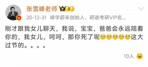 而张姩菡的回应则让张雪峰有点懵,女儿询问他如果爸爸没了怎么办。