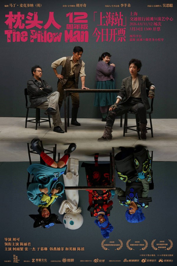 《枕头人》12周年版将继续开启苏州、上海、南京、成都、重庆的全国巡演之旅。作为一部兼具商业性与艺术性的剧作,《枕头人》12周年版凭借扎实的文本与动人的表达,不仅让老观众看到新的惊喜,也吸引了众多从未看过话剧的新观众走进剧场。陈丽君与主创团队也将带着这份对戏剧的热爱,在全国多座城市的舞台上演绎这场残酷中的温暖故事,让更多观众感受直面戏剧的独特魅力。本次《枕头人》12周年版全国巡演票务全程由猫眼总代理,目前苏州、上海均已开售,上海站首场恰逢《枕头人》百场纪念场,4月7日演出现场也将推出百场限定活动,为观众带来专属纪念与多重惊喜。