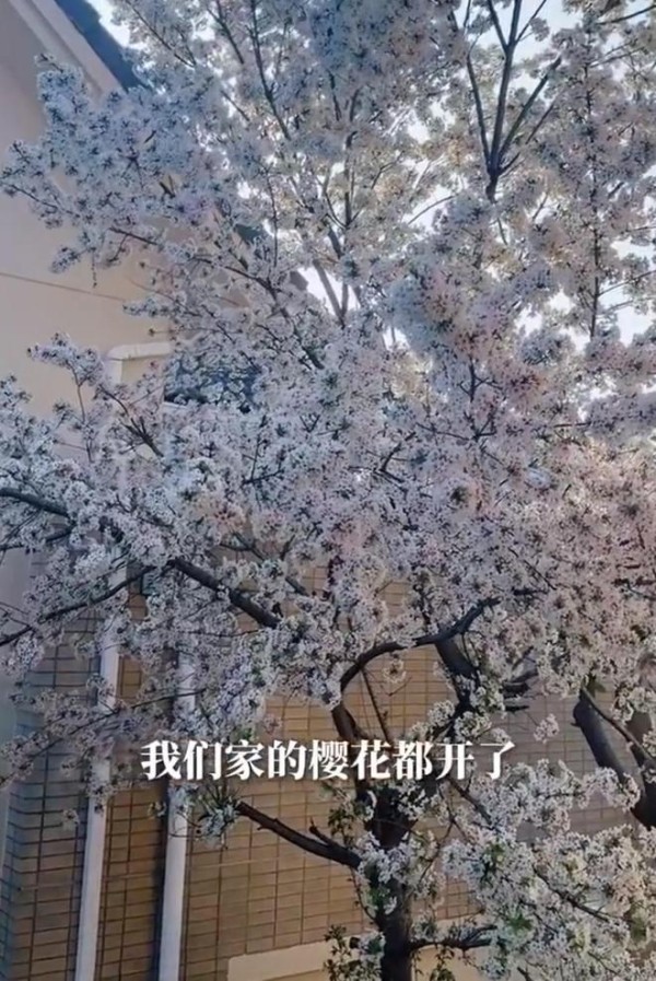 视频一开始,伊能静晒出自家豪宅外的的樱花树,春天到了,樱花盛开,粉白相间的花朵春意盎然。