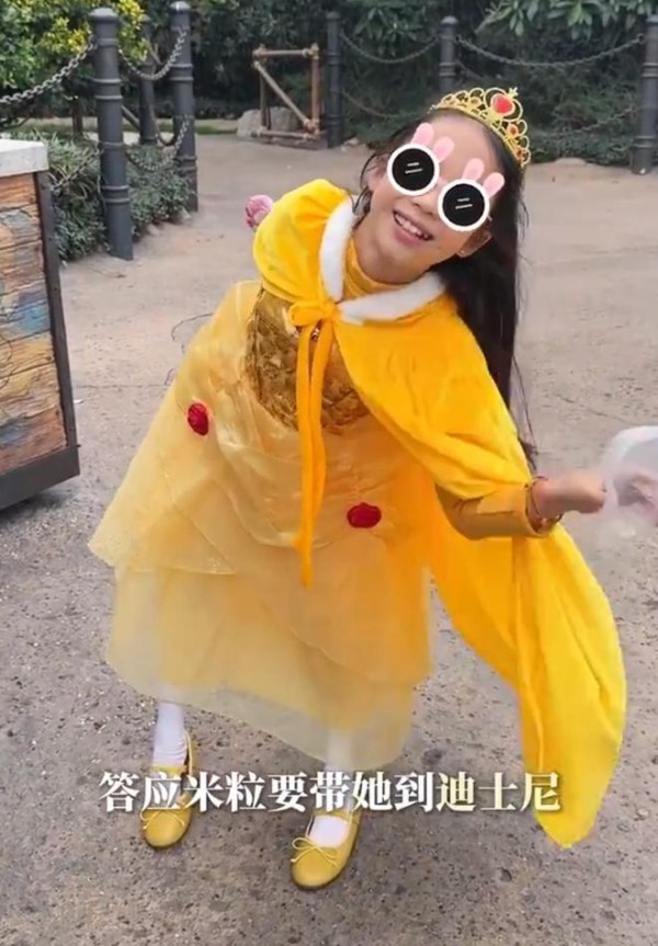 “米粒”明显长高不少,前去迪士尼时,她还特意穿上橘黄色的公主裙,头戴橘色皇冠,一头长发披肩而落,在父母的陪伴下,她笑得格外开心。