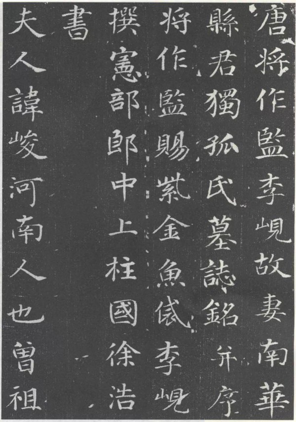 徐浩所书《李岘妻独孤峻墓志》唐天宝十三年刻(754年),李岘撰,在2000年出土于西安市长安区郭杜镇。