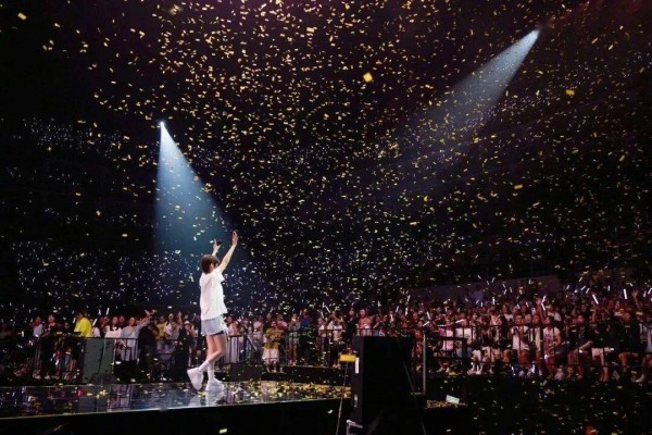 只是在演唱会上,唱了一首《流言》:“流言追着我,用尽了力气,我还是我自己。”