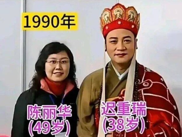 2. “唐僧肉”的真相:是供养,还是修行?1990年,陈丽华与迟重瑞结婚。那一年,陈丽华49岁,离异带三娃;迟重瑞38岁,正值演艺事业巅峰。