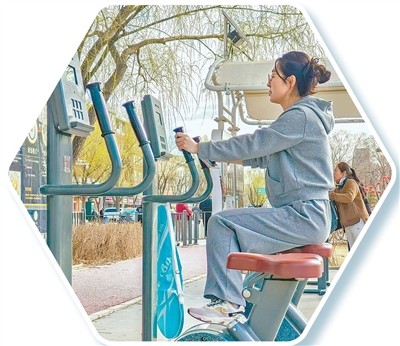 内蒙古呼和浩特市万和体育公园内,市民在使用智慧健身器械锻炼身体。