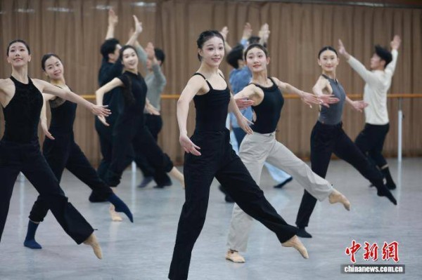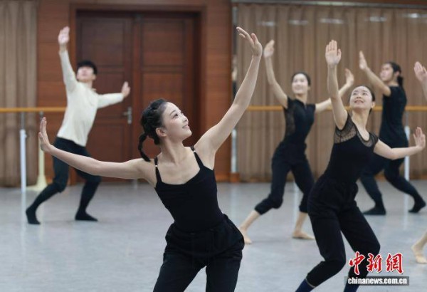 4月14日,辽宁歌舞团举办《古色·国宝辽宁》排练开放日活动。媒体记者、粉丝观众与汉服爱好者齐聚一堂,共同走进排练一线,近距离感受国宝文物与舞台艺术交融的独特魅力,为剧目本周末正式演出提前预热。图为演员在排练中。中新社记者 于海洋 摄