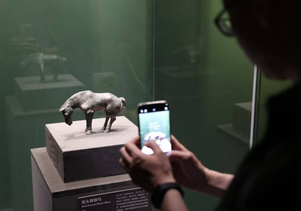 观众在观看战国低头青铜马。新京报记者 浦峰 摄