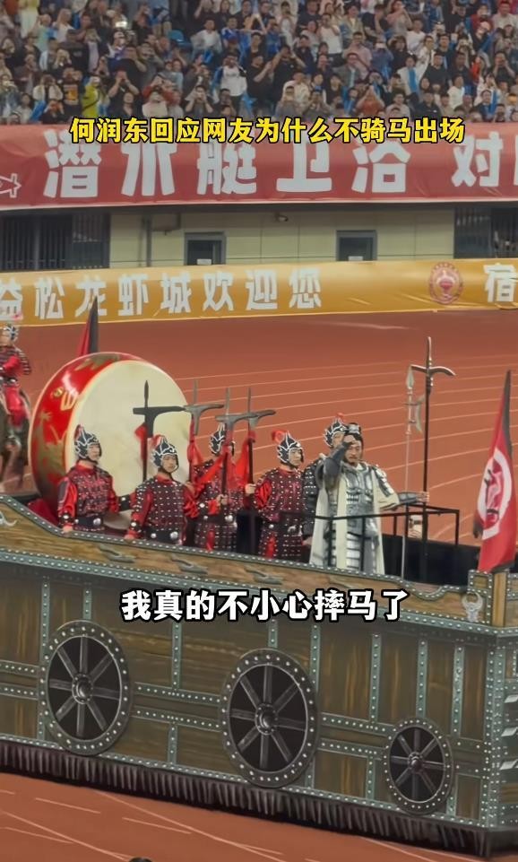 除了个人的考量,客观安全因素同样关键。主办方随后补充说明,容纳三万人的嘈杂球场环境复杂,缺乏封闭的专业马道,马匹极易因巨大声浪和突发情况受惊失控,风险极高。最终,各方协商后,将方案调整为驾战车亮相,并辅以铠甲马队营造气势,在确保绝对安全的前提下,最大程度还原了楚霸王的威武场景。