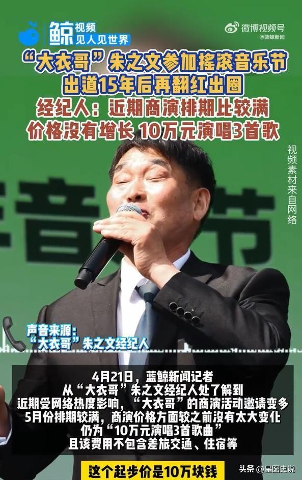 大衣哥越来越吃香!经纪人称他商演邀约增多,3首歌报价10万元
