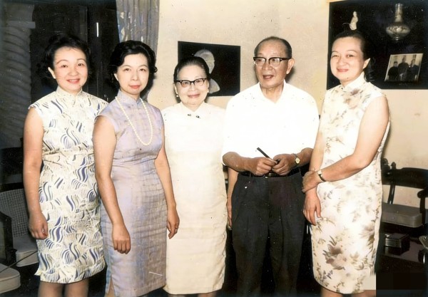 1974年,林语堂夫妇庆祝八十大寿,同两个女儿,一张罕见的留影