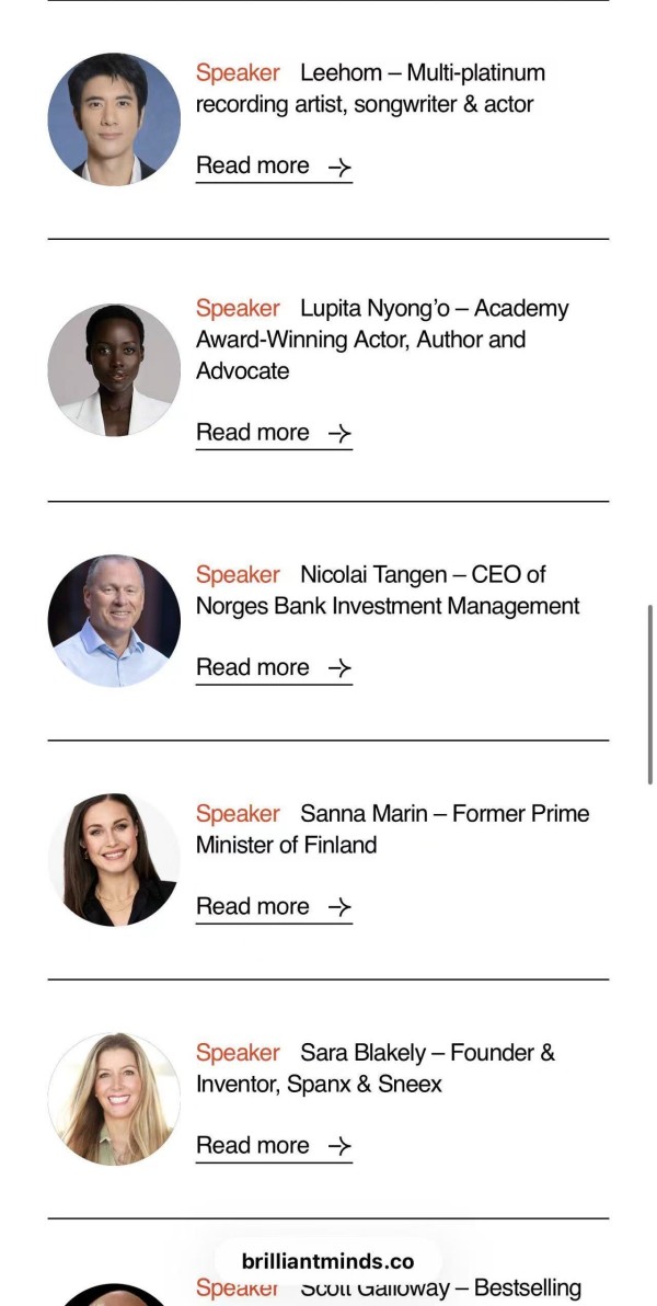 “Brilliant Minds ”由 Spotify 创始人 Daniel Ek创办,核心是连接全球科技、艺术、商业等领域的顶尖人物,共同探讨世界级的议题。