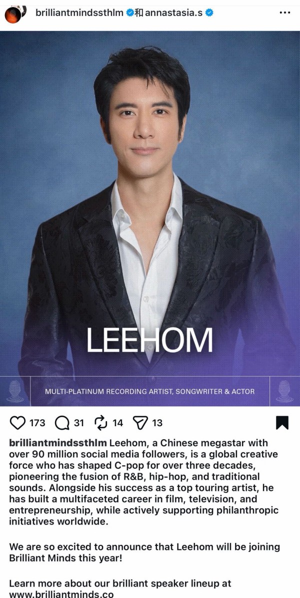 近日,全球顶尖创意峰会“Brilliant Minds”官宣了2026年度出席嘉宾。其中王力宏正式受邀担任演讲人,并成为该峰会邀请的唯一华人代表,在世界舞台推广、交流华人音乐。该峰会将于6月在瑞典斯德哥尔摩举办。