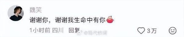 魏笑也在评论区暖心回她:“谢谢你,谢谢我生命中有你”,一点客套话没有,全是藏不住的真心感激。
