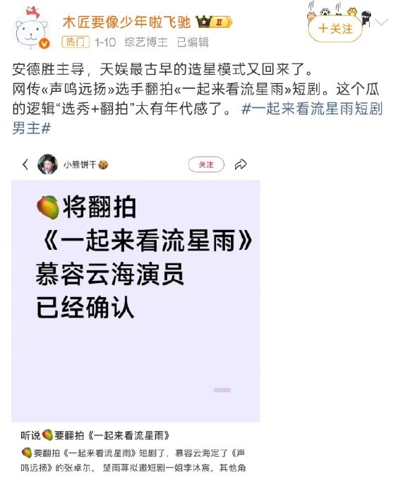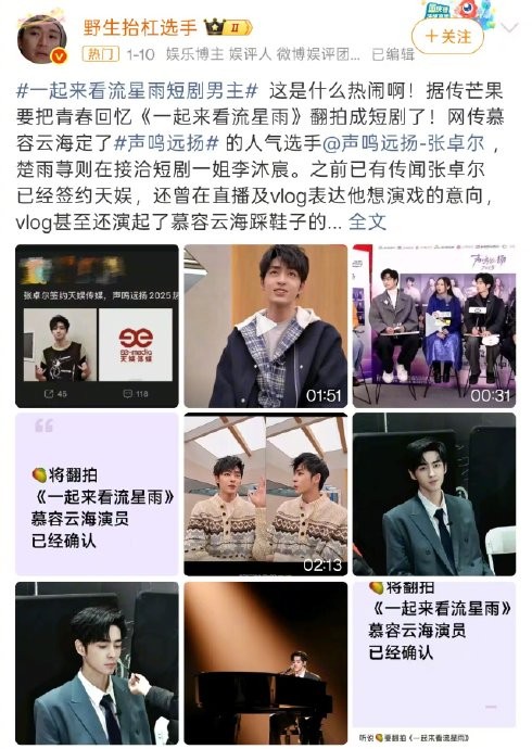#我先关心楚雨荨是谁##每个年代都有自己的流星花园#谁的童年被《拾忆》一键召回!新版慕容云海@张卓尔zze 在音乐会开嗓太戳心,完美契合年少时心中的云海形象。个个版本的慕容云海都颜值在线,现在最期待楚雨荨的扮演者,期待鲜活倔强的演绎。
